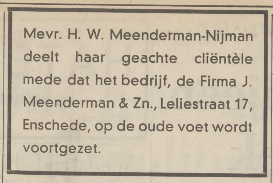 Meenderman J. aannemer Leliestraat 17 advertentie 1-4-1967