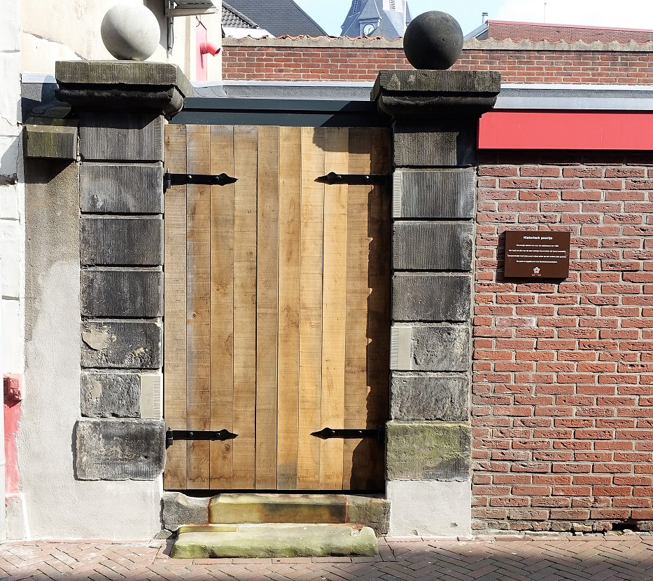Leo Nijkamp beschreef in een artikel dat de tuinpoort van voor 1862 ( de stadsbrand van Enschede) moet zijn geweest. Toen Maurits in 1597 Enschede op de Spanjaarden veroverde, werd de buitengracht met de nog aanwezige wal dichtgegooid. Het stratenpatroon en de grootte van de percelen uit die tijd bleef onveranderd.