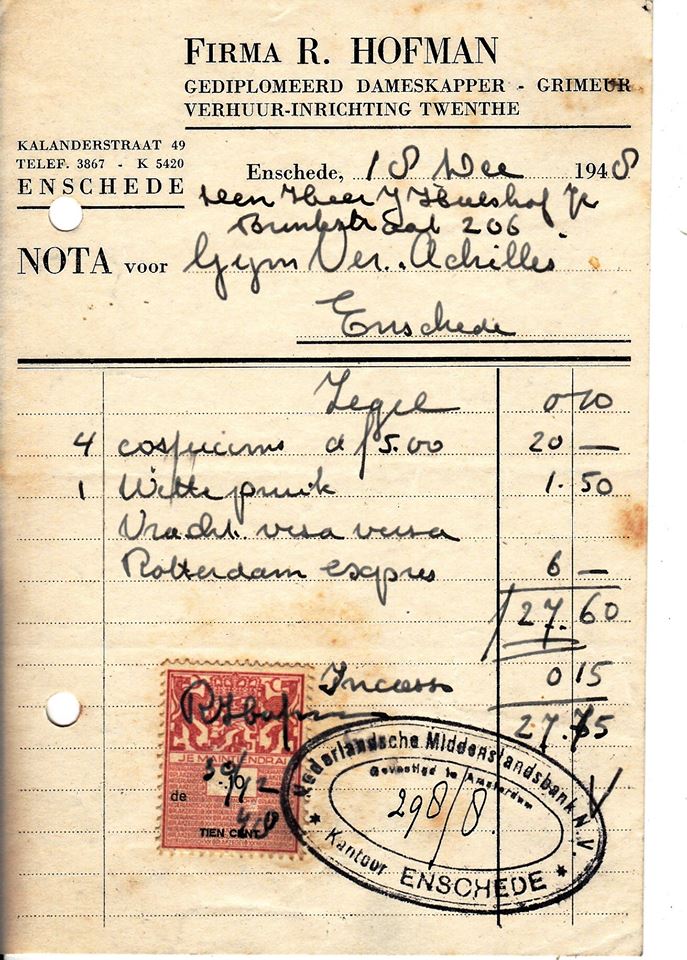 Kalanderstraat 49 dameskapper R. Hofman nota 1948.