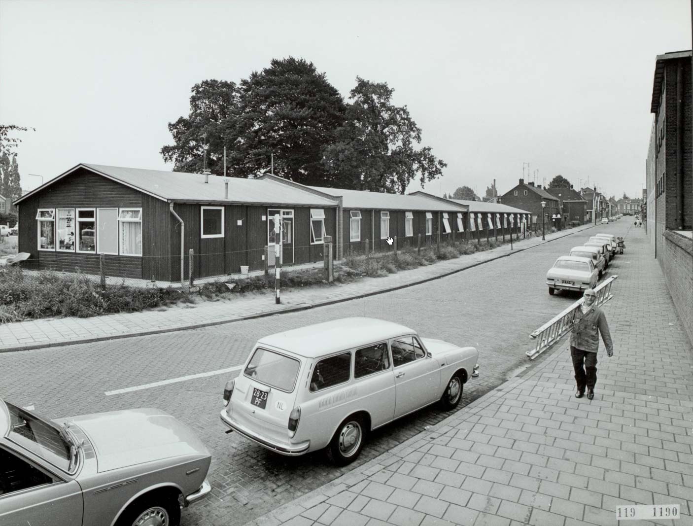 De houten barakken op grond van de voormalige speeltuin die daar was.
