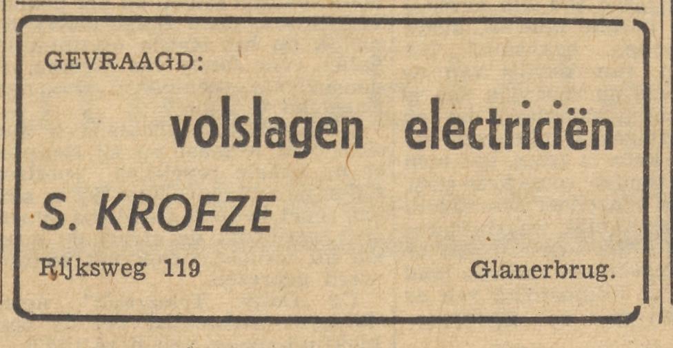 Kroeze, S. El.technisch bureau, radiohandel, Rijksweg 119