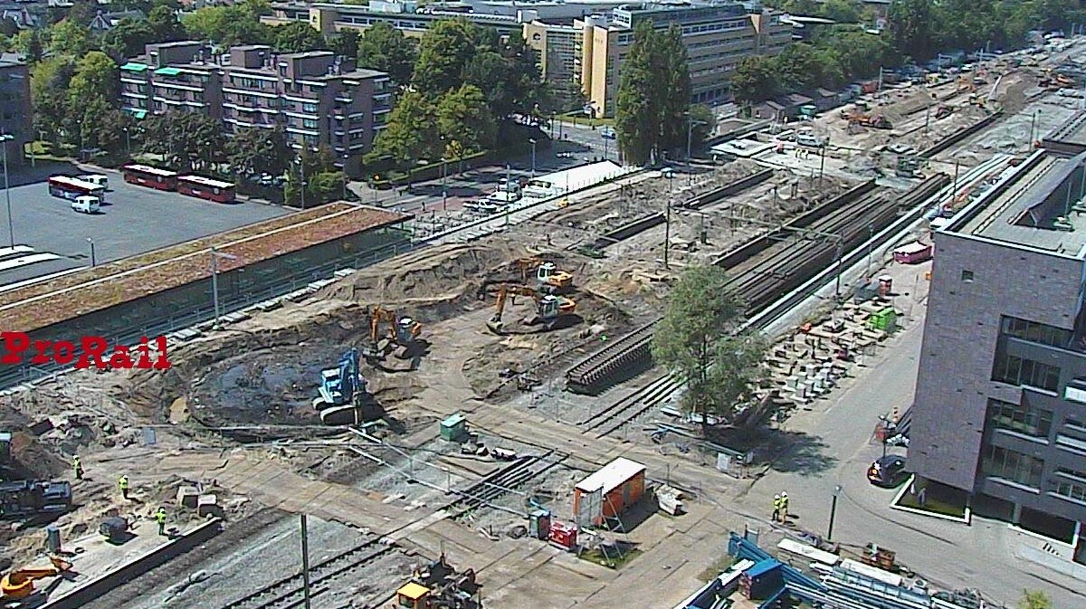 Het gaat hard! De sporen, perrons en bovenleiding worden al terug gebouwd.