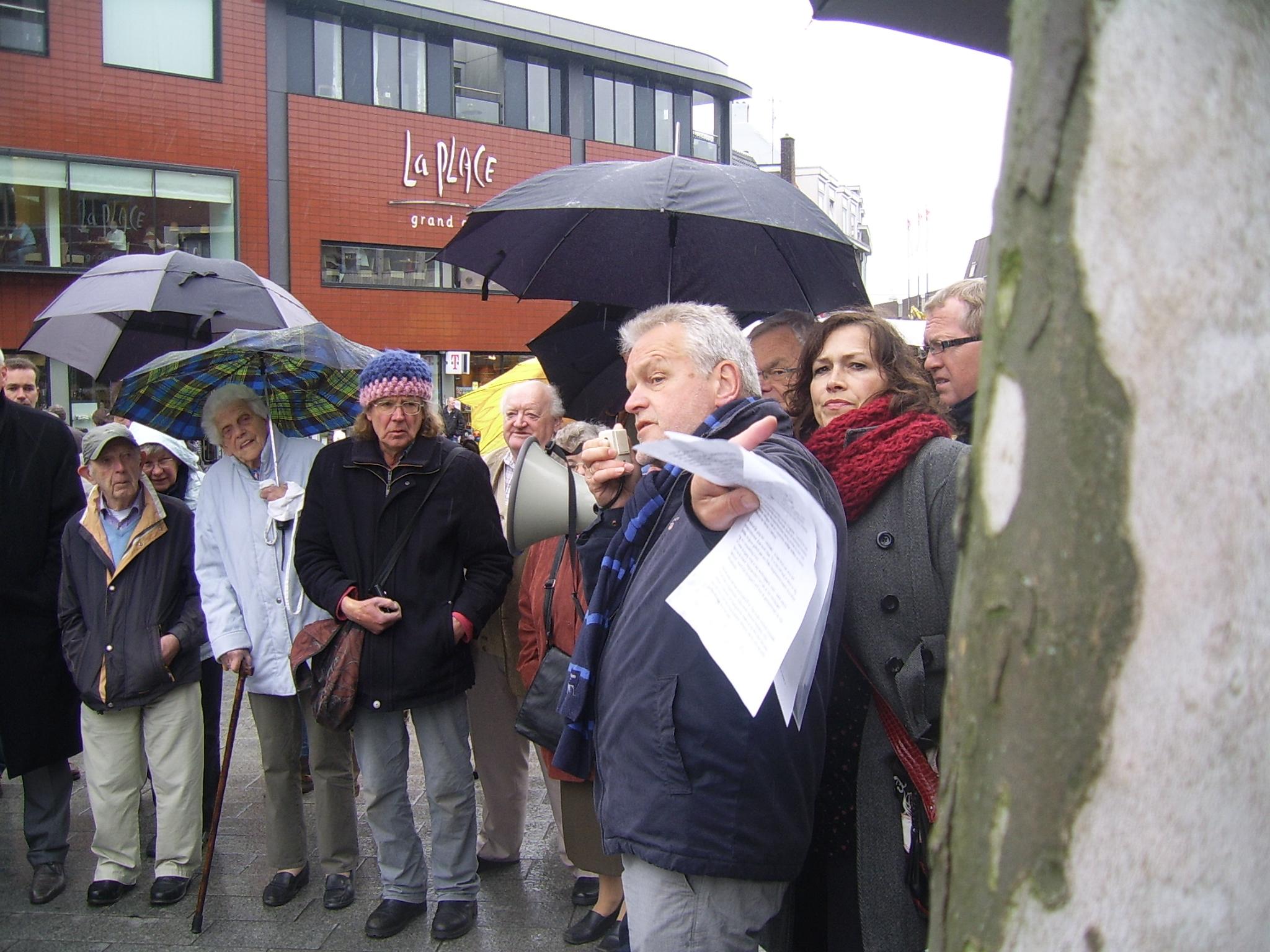 De stadreporter was er natuurlijk bij. Maakte prachtige opnames, ondanks de regen. Zelfs de lens leek niet nat te worden. Handig en bedreven!