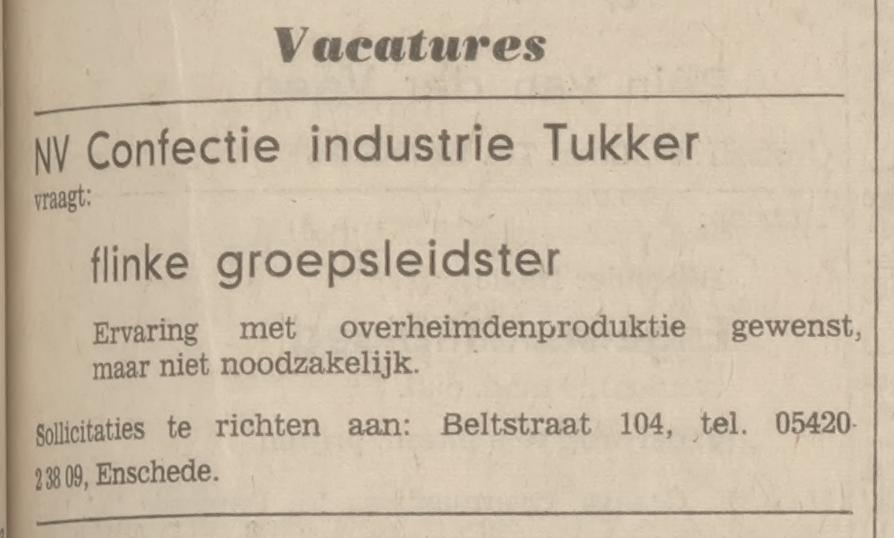 - Tubantiastraat 83 N.V. Confectie Ateliers Tubantia advertentie Tubantia 12-6-1970.jpg (50.04 KiB) 5563 keer bekeken