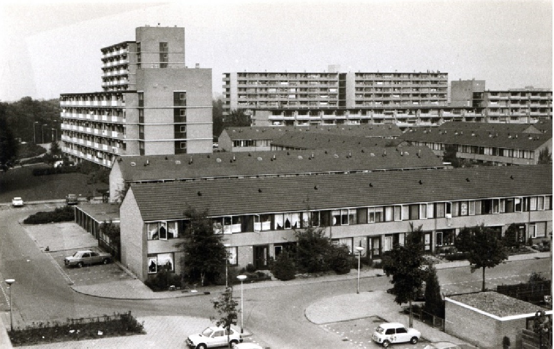 Het Oosterveld In oostelijke richting met zicht op woningen 1980.jpg