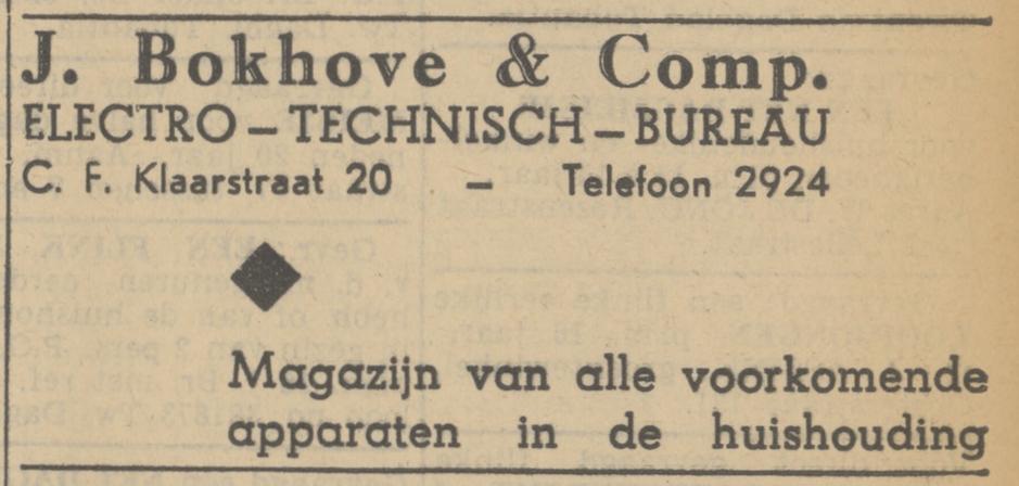 C.F. Klaarstraat 20 J. Bokhove & co. advertentie Tubantia 27-7-1938.jpg