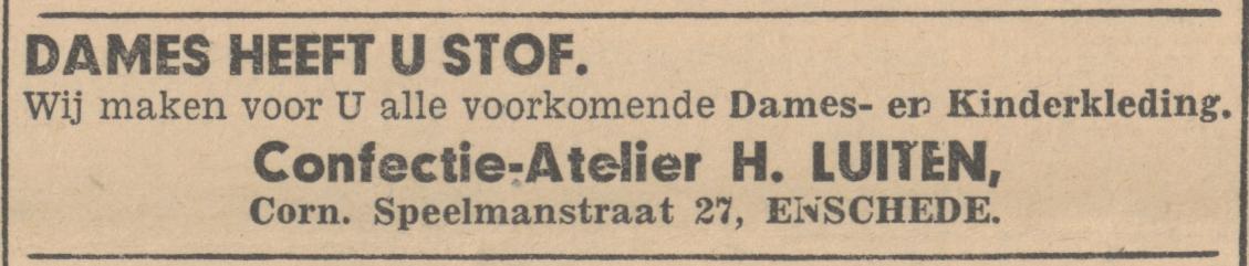 Luiten H. textielarbeider Cornelis Speelmanstraat 27 advertentie 30-6-1945