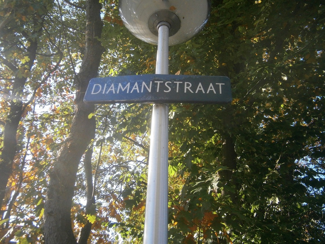 De Diamantstraat loopt van de Meester Wolfstraat, ongeveer in n.w.-, dan in w.-richting tot de Smaragdstraat.