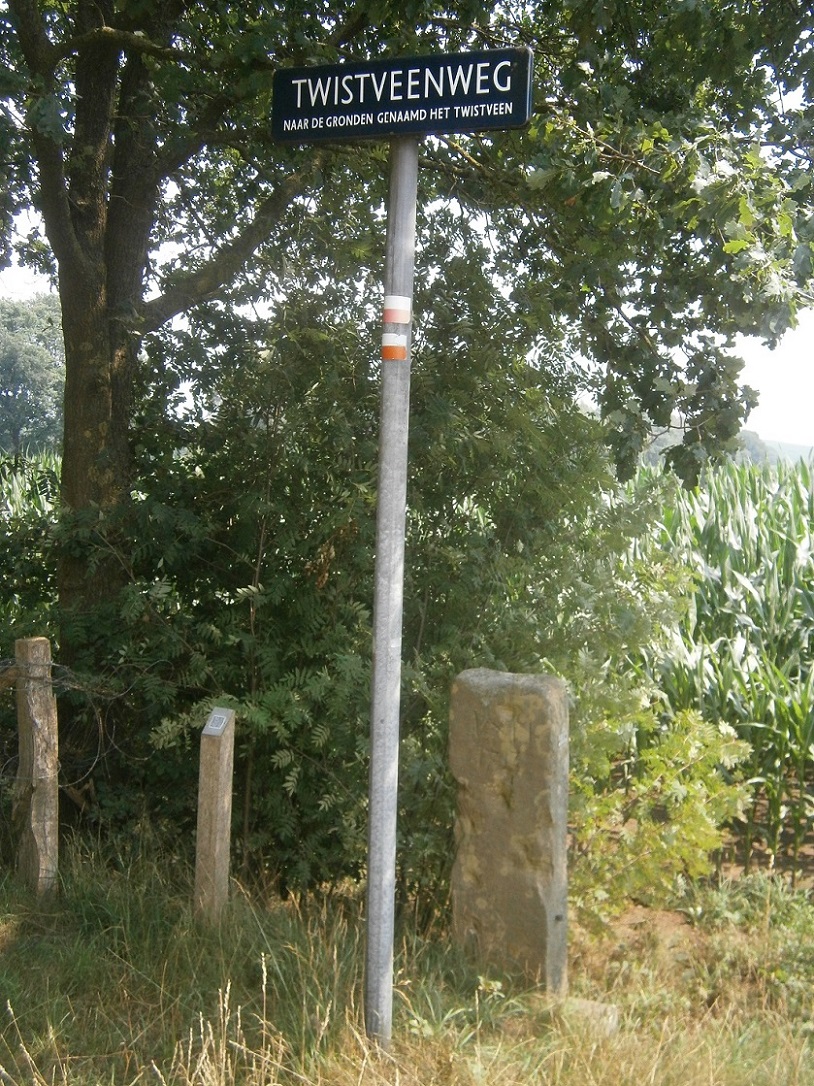 Twistveenweg straatnaambord met grenssteen Werthepaal.JPG