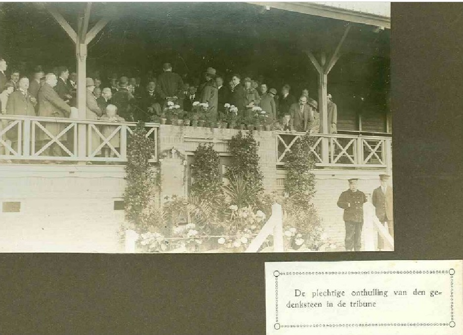Weggelhorstweg 1925 Plechtige onthulling van de gedenksteen in de tribune van voetbalvereniging Sportclub Enschede..jpg