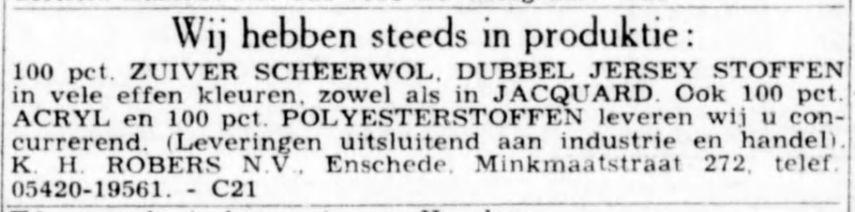 Aan de Minkmaatstraat 272 was de wasserij en weverij met ververij van de Firma K.H. Robers gevestigd.
