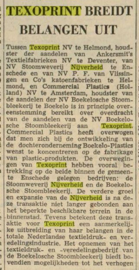 Hatema-Texoprint zat ook in Boekelo bij de Boekelosche Stoombleekerij. Hierover later meer.