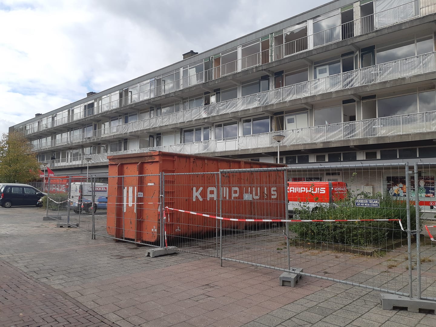 Er is nog steeds een betonreparatiebedrijf bezig met de balkons en de meeste profielen zijn geplaatst om de ooit zo populaire betonlook te verbergen. Er zijn in dit blok nu 2 abnamro pinautomaten, dus blijkbaar een erg veilige wijk.