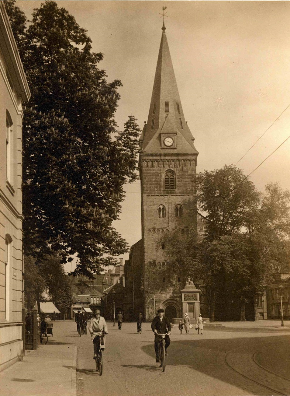 - Markt Kerk torenspits voor de restauratie in 1928. foto uit 1925 afkomstig vanwege het vlagvertoon op de voorgrond.Of op 31 augustus ,de verjaardag van Wilhelmina..jpg (80.71 KiB) 14849 keer bekeken
