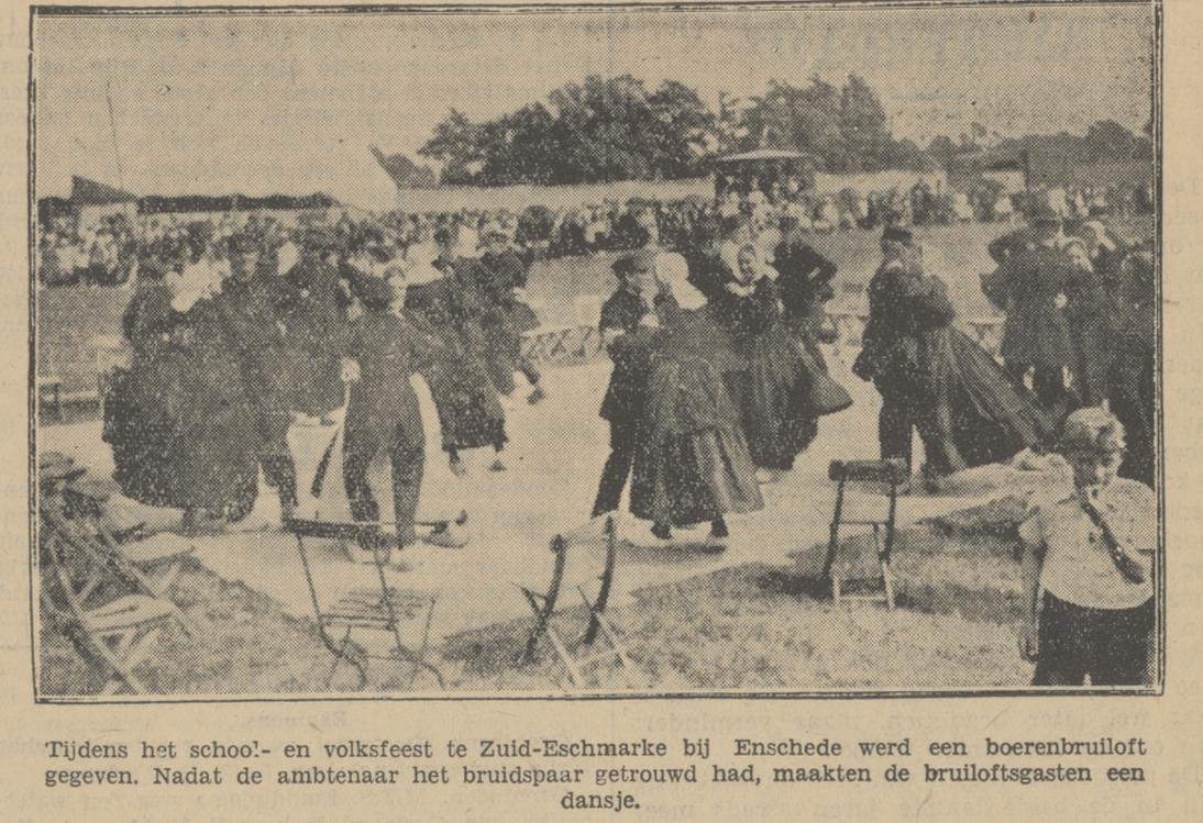 Zuid-Eschmarke boerenbruiloft tijdens school- en volksfeest krantenfoto 9-7-1934