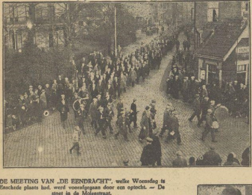 Molenstraat optocht Textielarbeidersbond De Eendracht krantenfoto Tubantia 21-1-1932