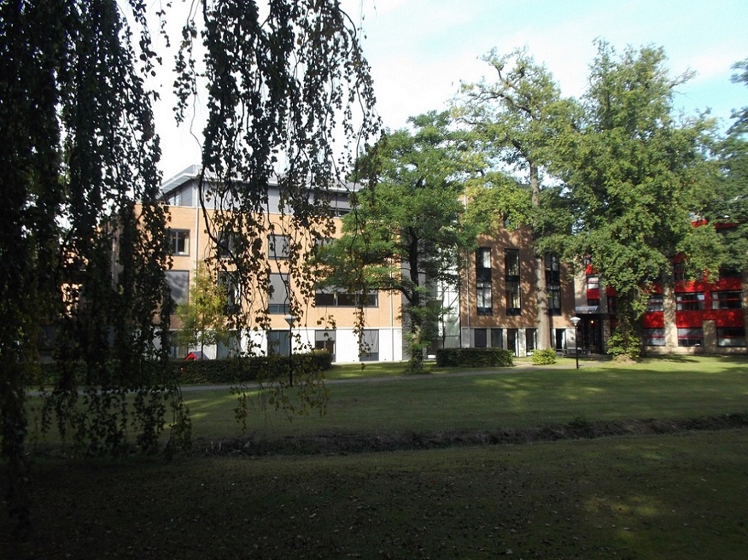 Het schoolgebouw is thans moeilijk aan de voorkant te fotograferen vanwege de bomen en de hekken die er nu omheen staan.