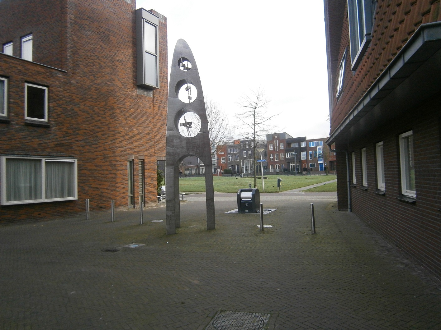 Heldersplein Glanerbrug kunstwerk Hart van twee uitwaaierende gebogen vormen.