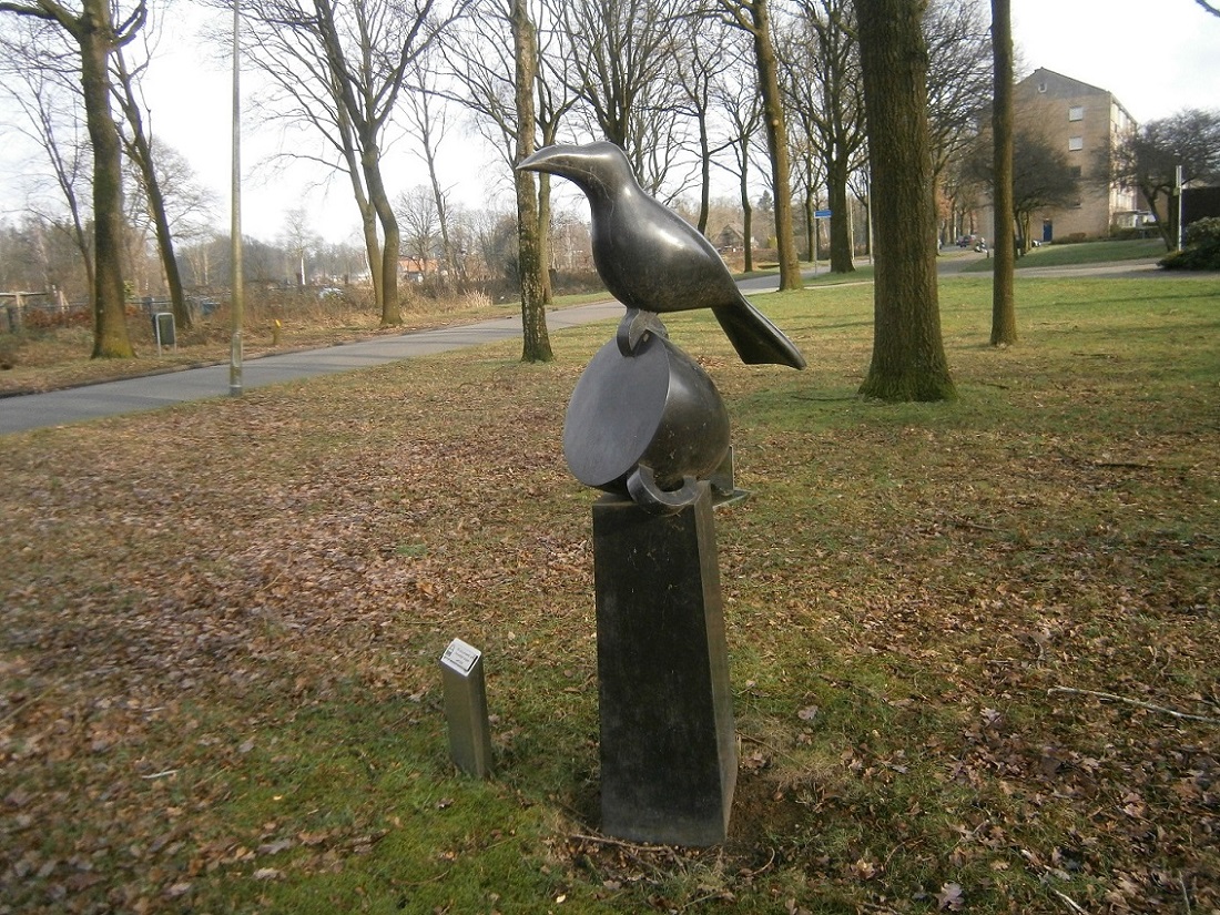 Vanekerstraat, ter hoogte van de Vanekerbeekweg kunstwerk Vogel op kopje genaamd Nomen Nescio.