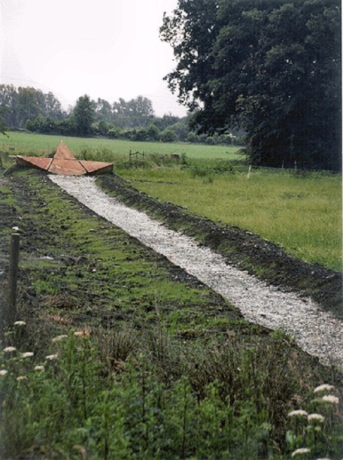 Aan de andere kant van de snelweg ligt nog een deel van dit kunstwerk.
