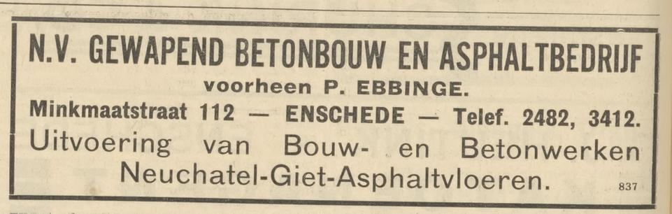 Ebbinge, N.V. Gew. Betonbouw en Asphaltbedr, v.h.P. Kant., Minkmaatstraat 112,