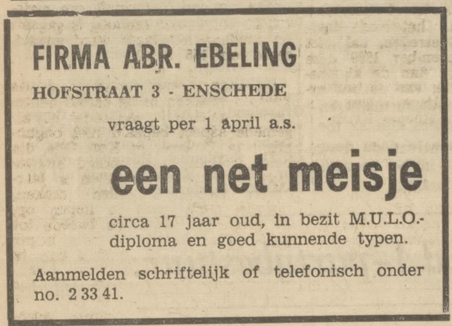 Ebeling, Abr. Katoen en garenagenturen, Hofstraat 3,