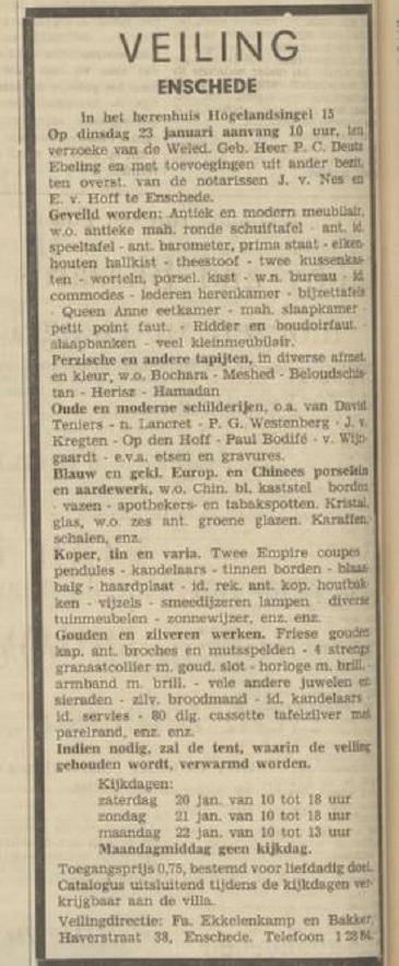 3671 Ebeling, P.C. Deutz Katoenagent, Hoogelandsingel 15.