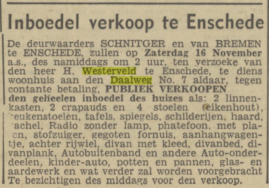Westerveld H. broodventer Daalweg 7 advertentie 12-11-1946