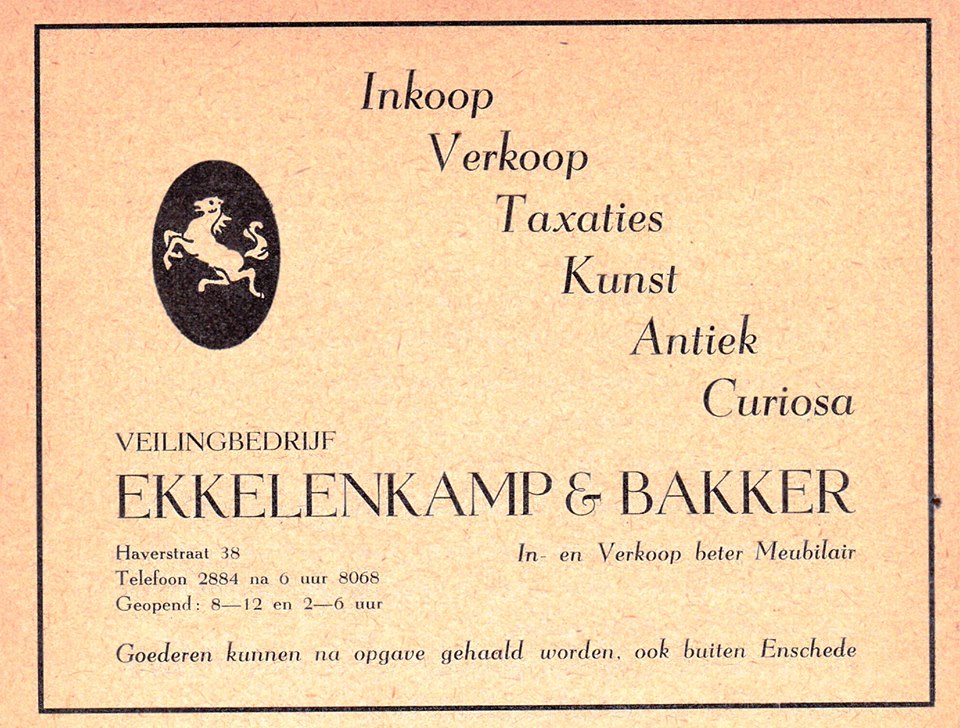 Ekkelenkamp Bakker Kunst- en Antiekh., Haverstraat 38 (8-12, 14-18 u.),