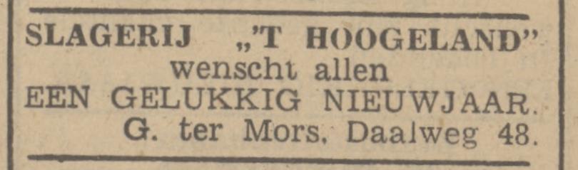 Daalweg 48 slagerij 't Hoogeland G. ter Mors advertentie Tubantia 31-12-1931.jpg