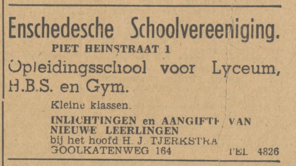 Enschedesche Schoolver. Piet Heinstraat 1