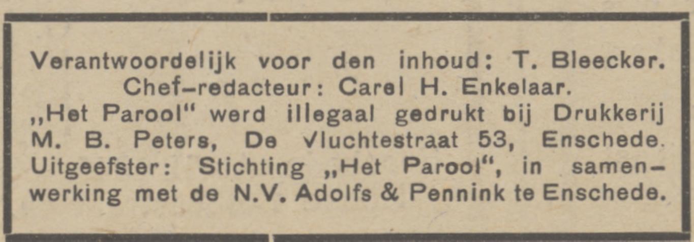 De Vluchtestraat 53 Drukkerij M.B. Peters krantenbericht Het Parool 10-4-1945.jpg