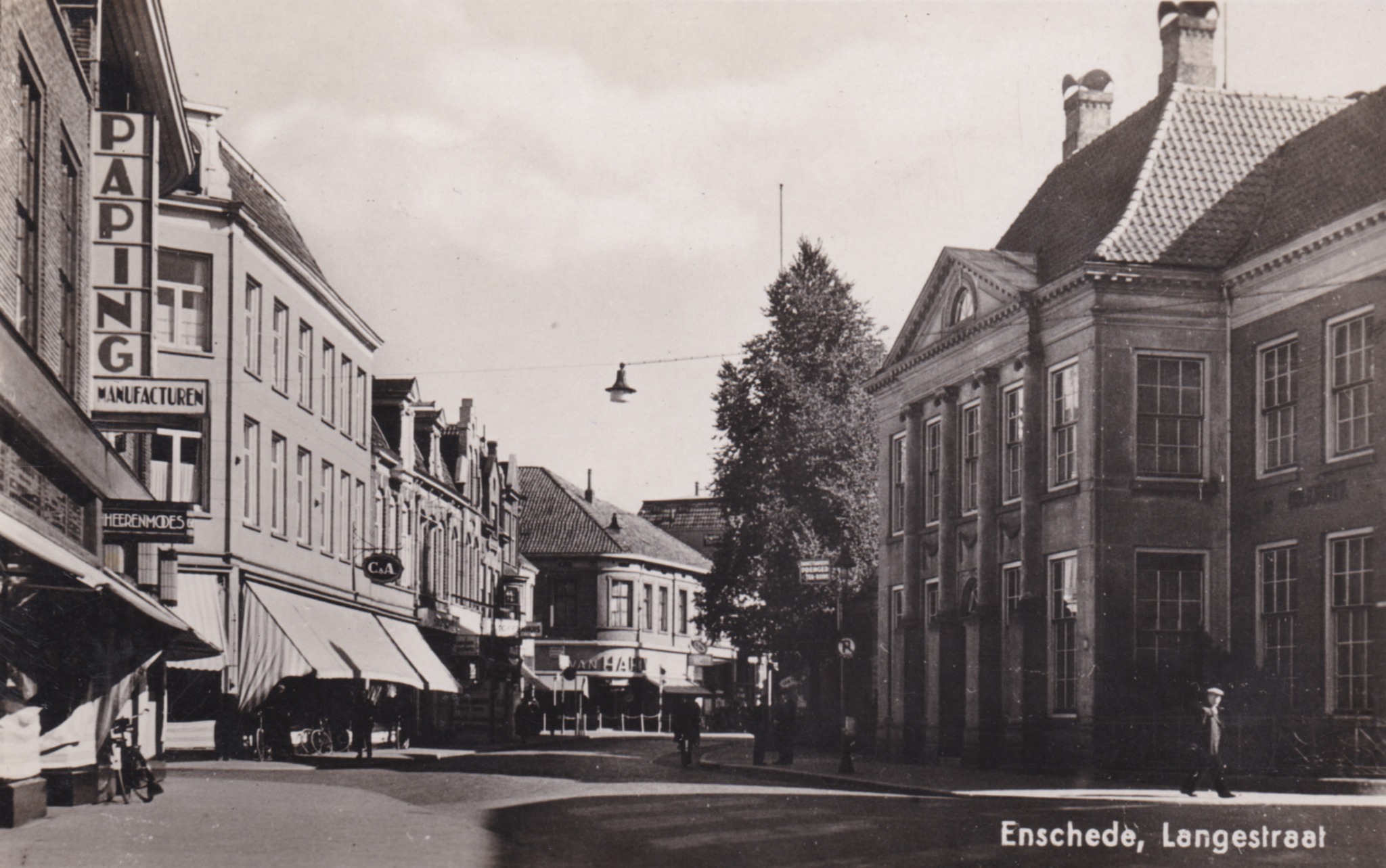 Langestraat 11 hoek Achter 't Hofje pand drukkerij M.J. van der Loeff van dagblad Tubantia 1931.jpg