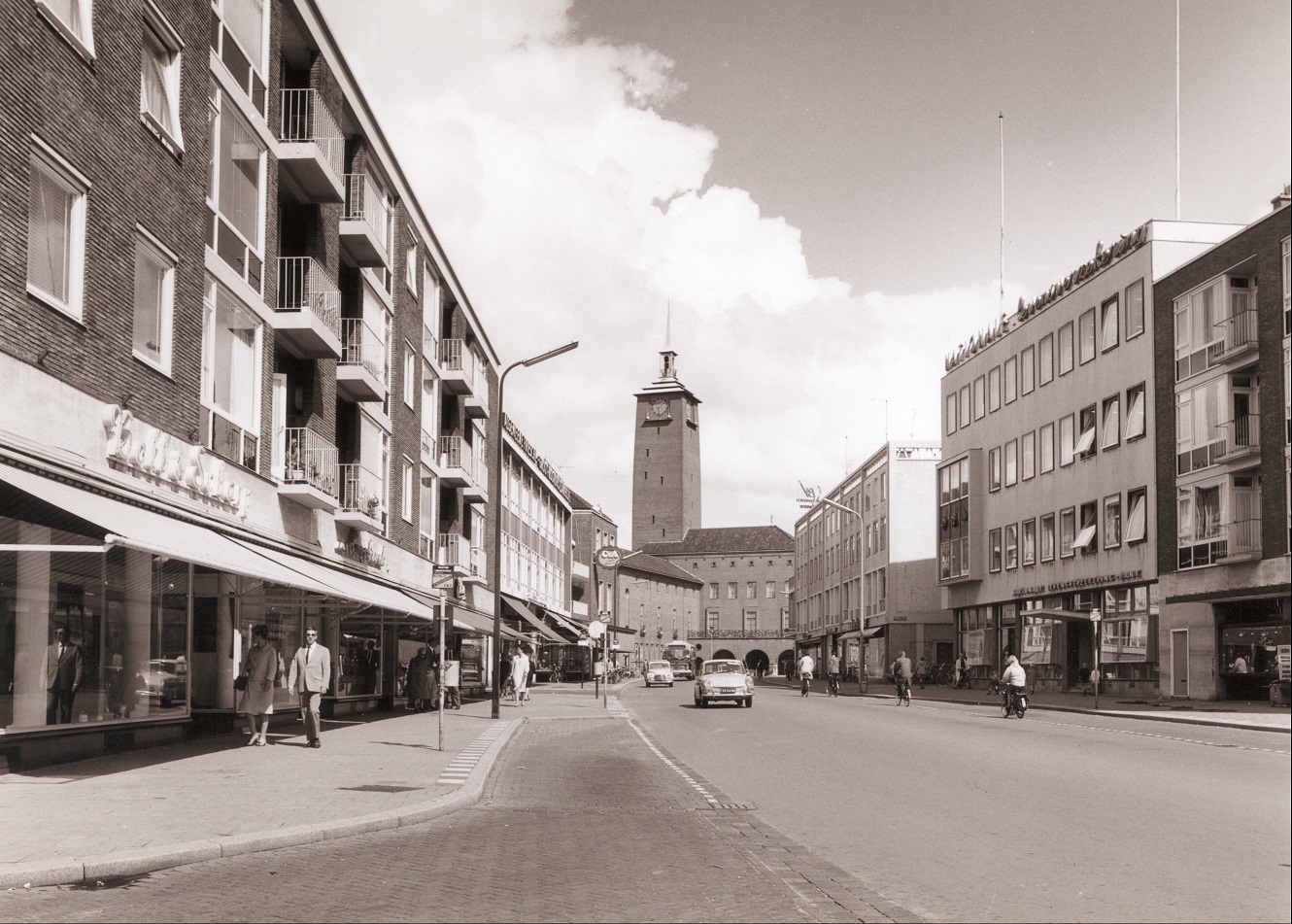 Langestraat 11-17 de Klomp, op achtergrond Espoortflat 1970.jpg