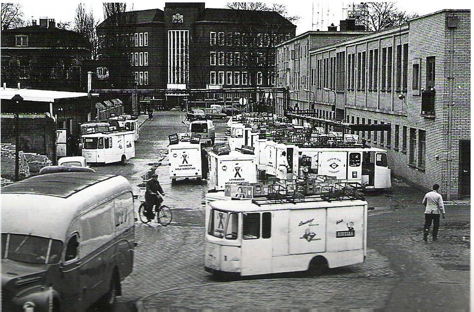 Helaas is op deze stadsarchief foto niet te zien welke melkkar het is. Met of zonder de hendel voor de halve liters.