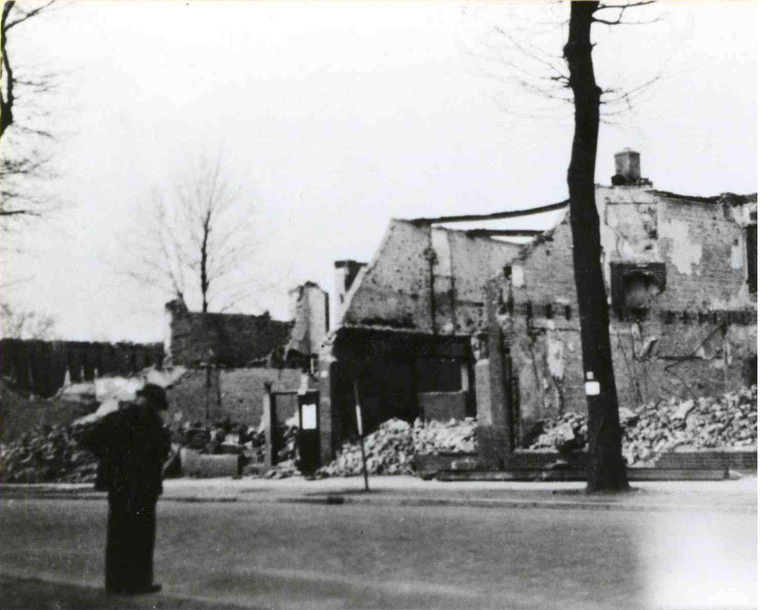 Er is toch iets vreemds met deze advertentie. Deze is geplaatst op 6 juni 1944, dus na het bombardement op die huizen aan de Haaksbergerstraat op 22-2-1944 (zie ook bijgaande foto). Volgens de ingemetselde gevelsteen (zie foto hierboven) is het pand herbouwd in 1948 en verder staat de datum 1919 -1944, Ik neem aan dat het pand dan bij het bombardement in 1944 is verwoest en dan toch nog de advertentie van 6-6-1944. Heeft de rijwielzaak de Wilde misschien toch nog op het adres nr, 344 de zaak kunnen voortzetten of is het misschien een ander adres geweest?Arie schreef:Haaksbergerstraat 344 G. de Wilde Advertentie. Twentsch nieuwsblad. Enschede, 06-06-1944. Het pand is herbouwd in 1948.