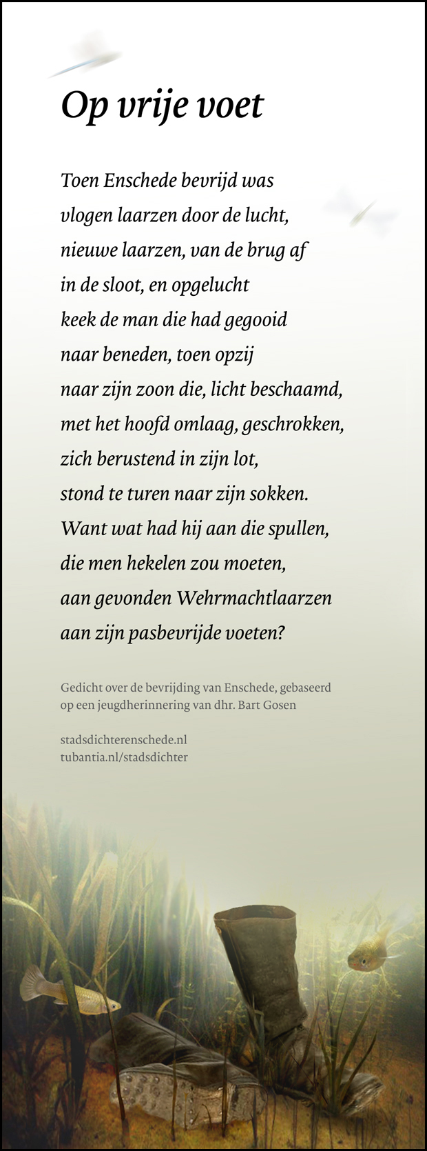 Kun je dat gedicht hier plaatsen?bartg schreef: ↑za feb 01, 2020 10:15 am Dat klopt .De Duitse laarsjes hadden we uit het weermachtsheim aan de Marthalaan .Toen mij vader mij met de laarzen zag werd hij erg boos en gelaste mij ze uit te trekken en hij gooide ze over de brug. Zo kon ik op de kousenvoeten naar huis.