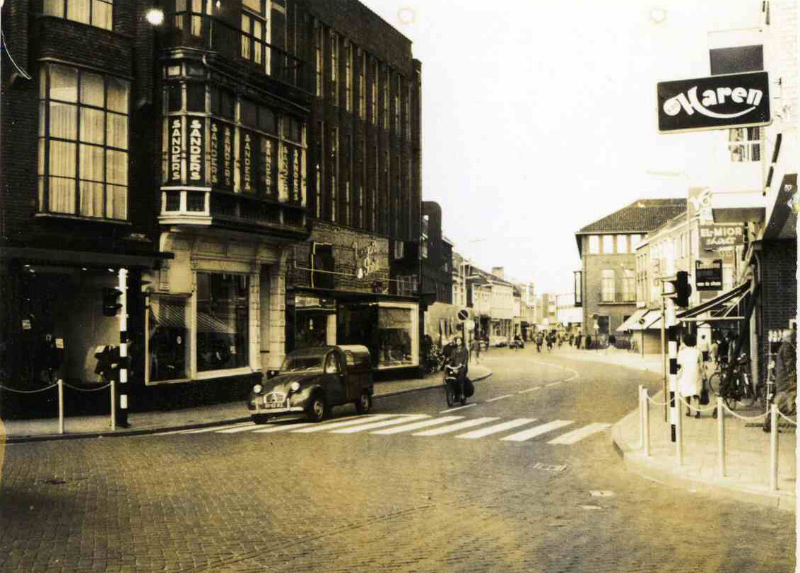 Op deze foto van de Langestraat hoek Kalanderstraat in 1967 is te zien dat Modehuis Sanders op de hoek zat en rechts daarvan Magasin de Paris