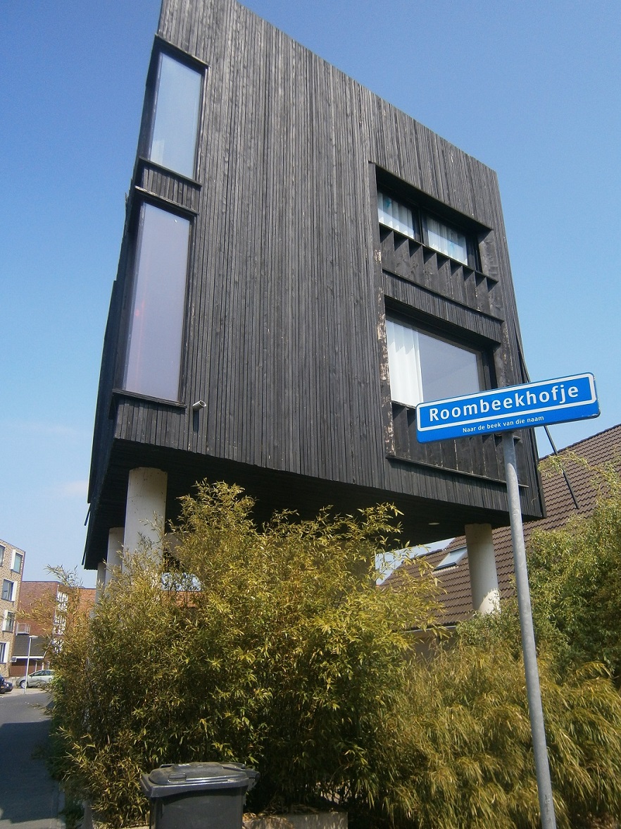 Dat het Roombeekhofje bestaat, is een goed bewaard geheim. Het werd ooit gebouwd op een wonderlijk stukje restgrond, een trapeziumvormig gat in het stedebouwkundige plan van de wijk. Plannen om er een stuk of wat patiowoningen te bouwen hielden gelukkig geen stand. Vergeten stukken grond in een gebied volgeplempt met huizen vragen om een creatieve invulling, niet om nog meer huizen van hetzelfde type en formaat.