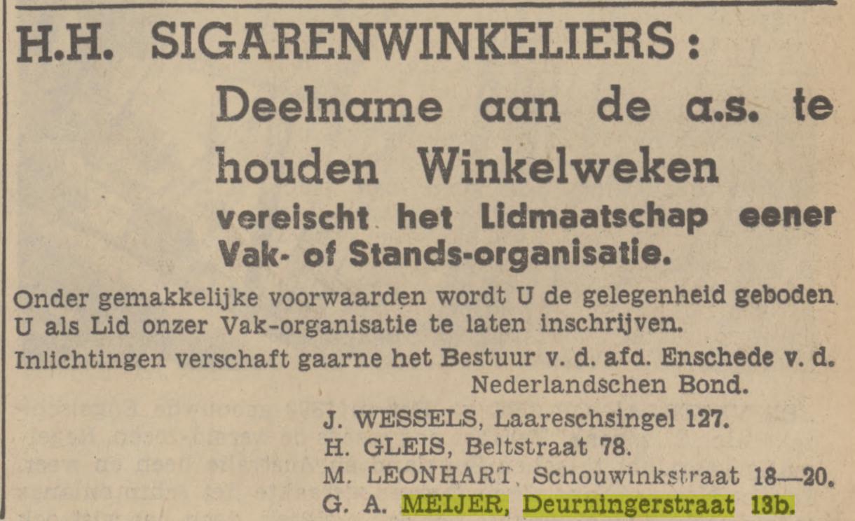 Meijer G.A. sigarenwinkelier Deurningerstraat 13 b advertentie 19-11-1938