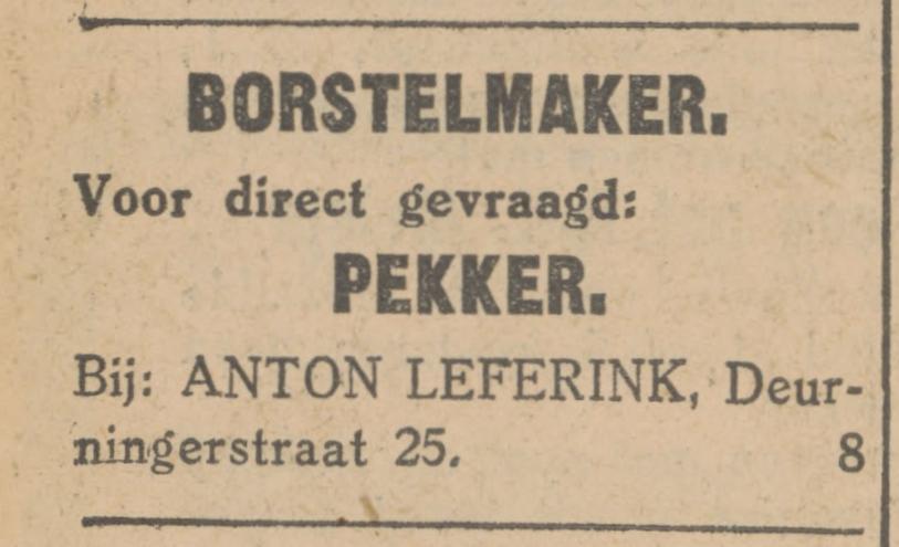 Leferink A.H. borstelmaker Deurningerstraat 25 advertentie 13-3-1930