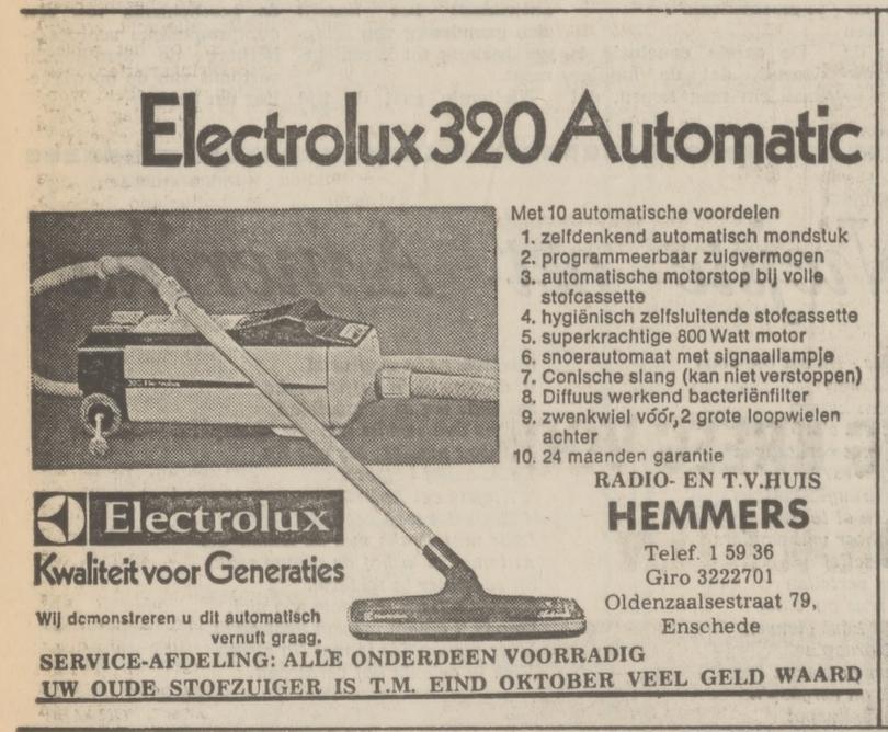 Oldenzaalsestraat 79 Radio- en TV Huis Hemmers advertentie Tubantia 27-9-1974
