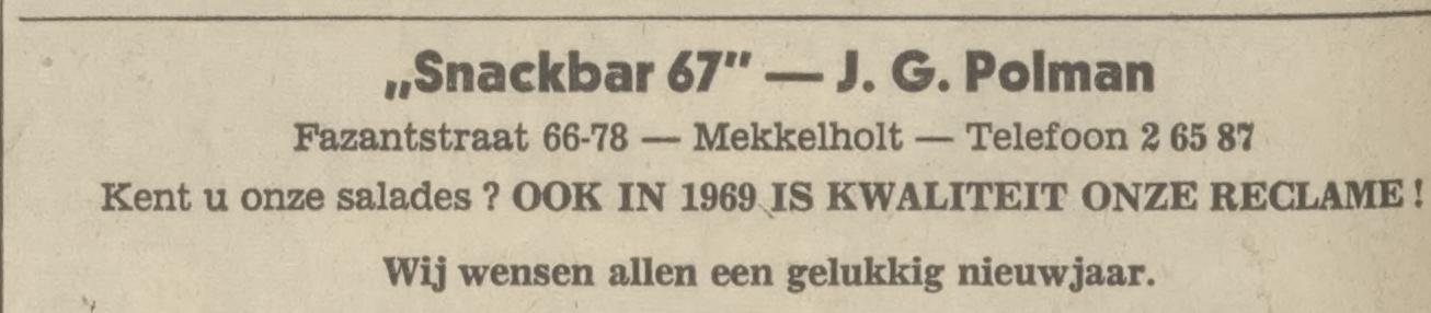 Fazantstraat 66-78 Snackbar 67 J.G. Polman advertentie Tubantia 31-12-1966.jpg