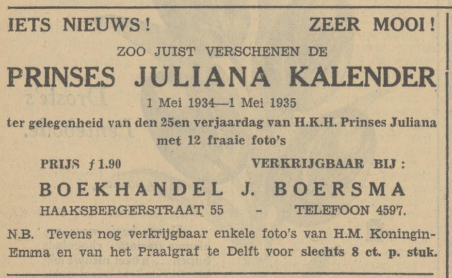 Haaksbergerstraat 55 boekhandel J. Boersma advertentie Tubantia 12-4-1934