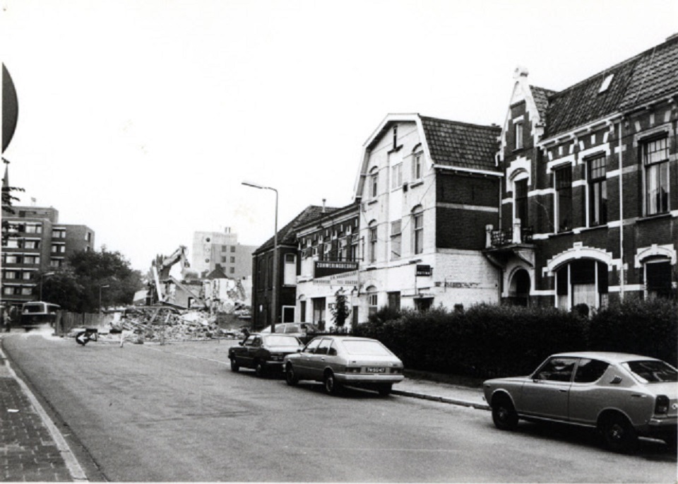 Molenstraat 36-38-40  Afbraak van panden Voogdgeert (zonwering) en Huitink (sport en sauna) ten behoeve van de bouw van de gemeentelijke dienst Openbare Werken, later Bouwdienst juli 1981.jpg
