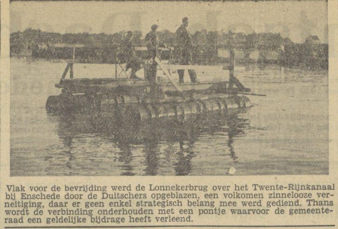 De Lonnekerbrug werd opgeblazen op 1 april 1945. zie meer hierover op: http://www.secondworldwar.nl/enschede/b ... vvWI_kiOmw