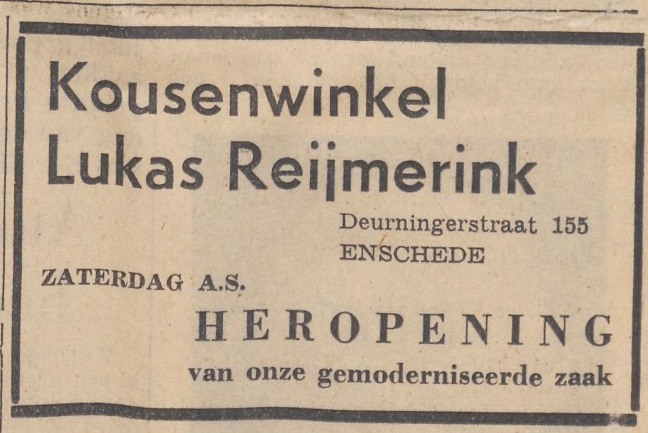 Reekers-Meijerink Wed. H. winkelierster Deurningerstraat 162 advertentie 8-3-1954