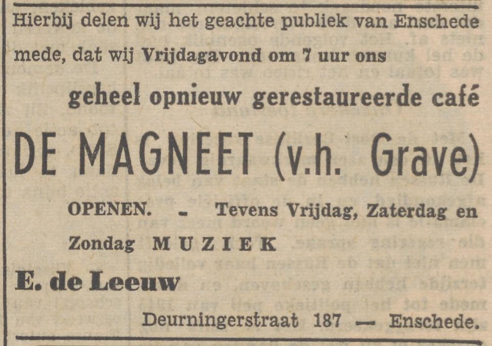 Deurningerstraat 187 cafe De Magneet voorheen cafe Grave advertentie Tubantia 18-6-1953.jpg