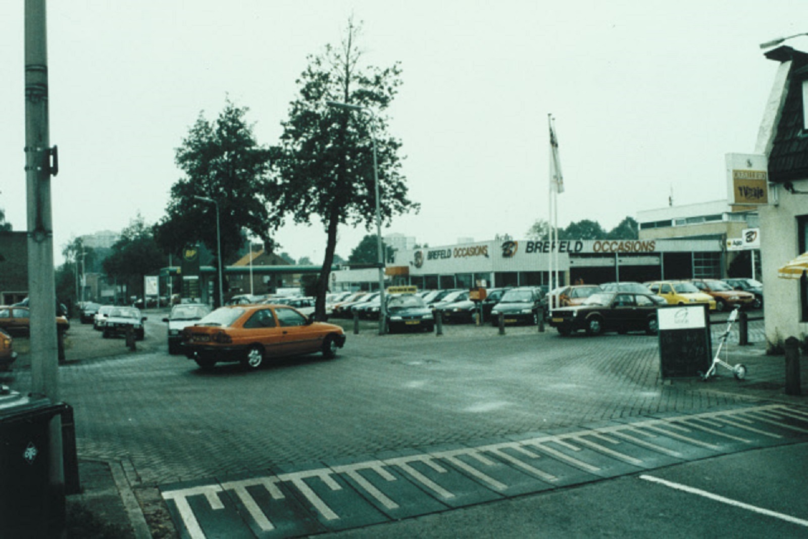 Voortsweg 145 hoek Potsweg en Hulsmaatstraat. Autobedrijf Brefeld Occasions en BP tankstation jaren 90.jpeg