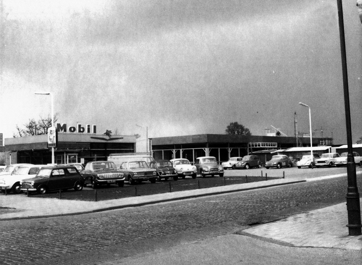 Voortsweg 145 Autobedrijf Brefeld op de hoek met de Hulsmaatstraat en Potsweg  omstreeks 1968. Met Mobil tankstation.jpg